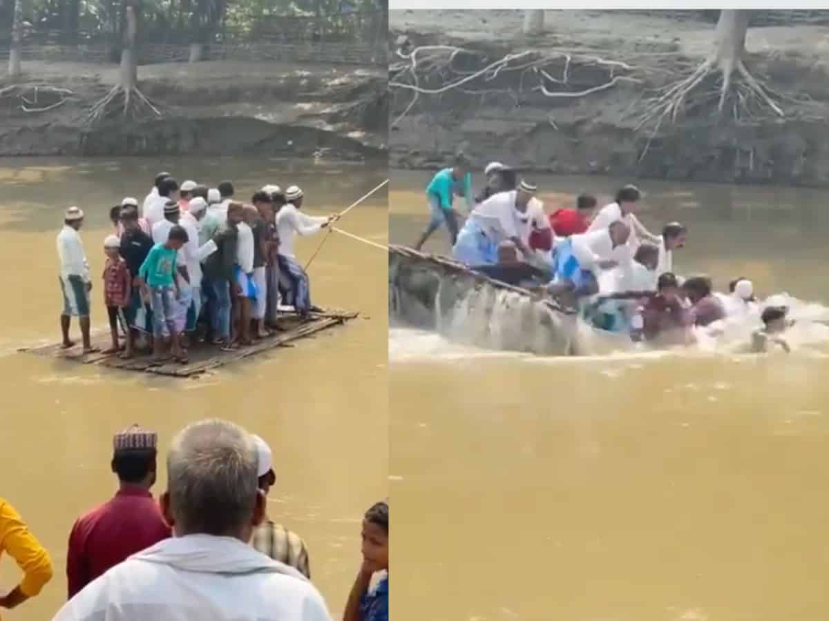 The video that has gone viral shows approximately 14 to 20 people including children in the flatboat crossing the river and it suddenly capsizing in the middle of the river. The boat reportedly became unstable due to the excessive weight of passengers. However, all people aboard managed to swim to safety, and those who could not swim, held onto the ropes tied to the shore.
