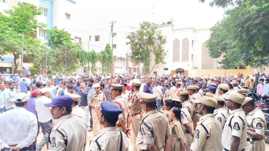 Hyderabad: Mild tension prevailed in Mallepally, Hyderabad, on Wednesday afternoon after All India Majlis-e-Ittehadul Muslimeen (AIMIM) MLA Majid Hussain protested over a mosque land row.